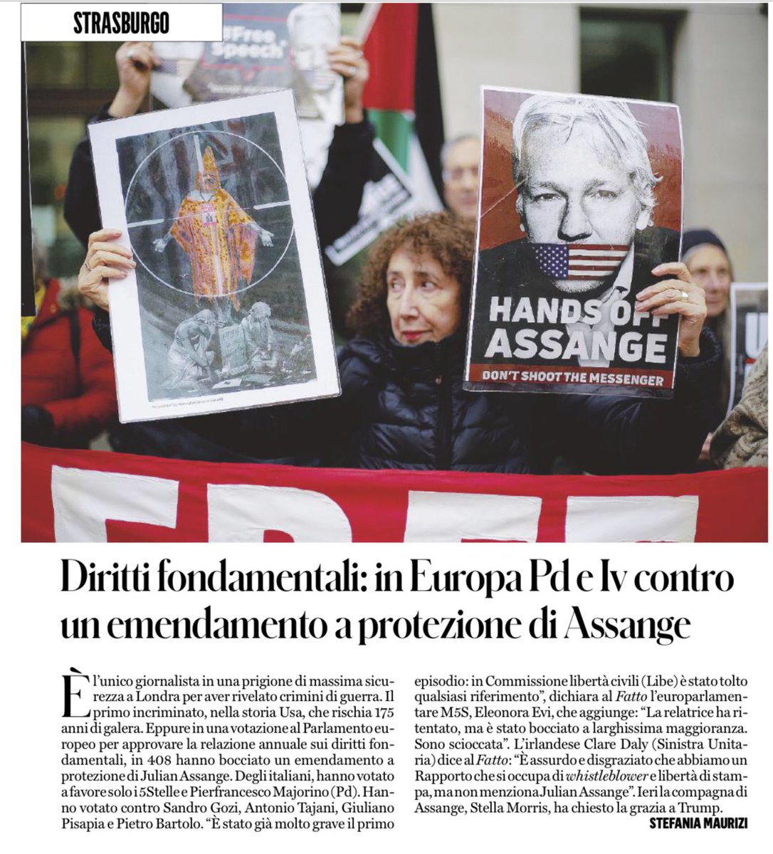 “La detenzione e l’incriminazione di Julian Assange costituiscono un grave precedente per i giornalisti come stabilito dall’Assemblea parlamentare del Consiglio d’Europa“.